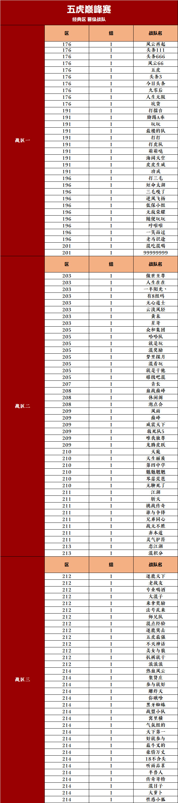 恭喜以下战队,他们将代表各自战区,征战10月25日开启的跨服对战,向至尊荣耀发起冲击!